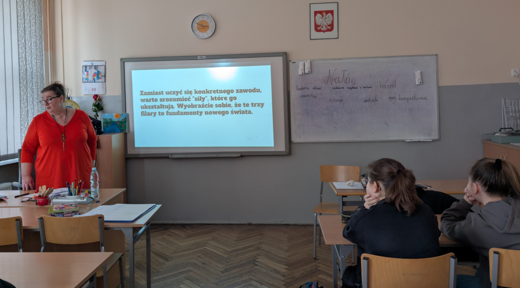 Poza częścią teoretyczną, warsztaty były doskonałą przestrzenią do dyskusji. Nauczyciele dzielili się swoimi doświadczeniami z codziennej pracy, analizując wyzwania, przed którymi staje współczesna młodzież w dobie dynamicznie zmieniającego się rynku pracy.